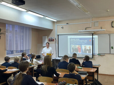 Память о подвигах и гордость за отважные поступки героев нашей страны, включая тех, чьи имена остались неизвестными, передаётся из поколения в поколение. Школьники узнают о смелости и непоколебимости соотечественников на уроках мужества и встречах с ветеранами, знакомятся с историями земляков, чтят память погибших и возлагают цветы к мемориалам. В преддверии Дня Героев Отечества «Навигаторы детства» ЗАТО Александровск организовали и провели для учащихся школ ряд мероприятий. В МАОУ «Гимназия» (г. Полярный), при активном участии советника директора по воспитанию Марии Сарбаевой, прошёл настоящий праздник души и духа – муниципальный фестиваль патриотического творчества «Героями славится страна». Юные артисты с невероятной проникновенностью исполняли песни и танцы, раскрывая перед зрителями широту и глубину русской души. Каждое выступление было пропитано уважением к истории, гордостью за подвиги предков и любовью к Родине. В МАОУ СОШ №1 им. М. А. Погодина девятиклассники стали участниками интерактивной станционной игры «Россия - страна Героев». Вместе с советником директора по воспитанию Ольгой Тереховой на станциях ребята вспоминали героев разных эпох – от легендарных богатырей до героев Великой Отечественной войны; изучали ордена, которыми награждаются герои СВО, и узнавали об их значении; составляли список необходимых для гуманитарной помощи нашим бойцам вещей; знакомились с улицами городов России, носящими имена героев СВО; решали исторические задачи и ребусы, связанные с героическим прошлым нашей страны. В МАОУ «СОШ № 276» (корпус 2) в День Героев Отечества советник директора по воспитанию Олеся Михальчук в сотрудничестве с Российским обществом «Знание» провела увлекательное занятие для 5-х классов на тему «Кто такие герои».