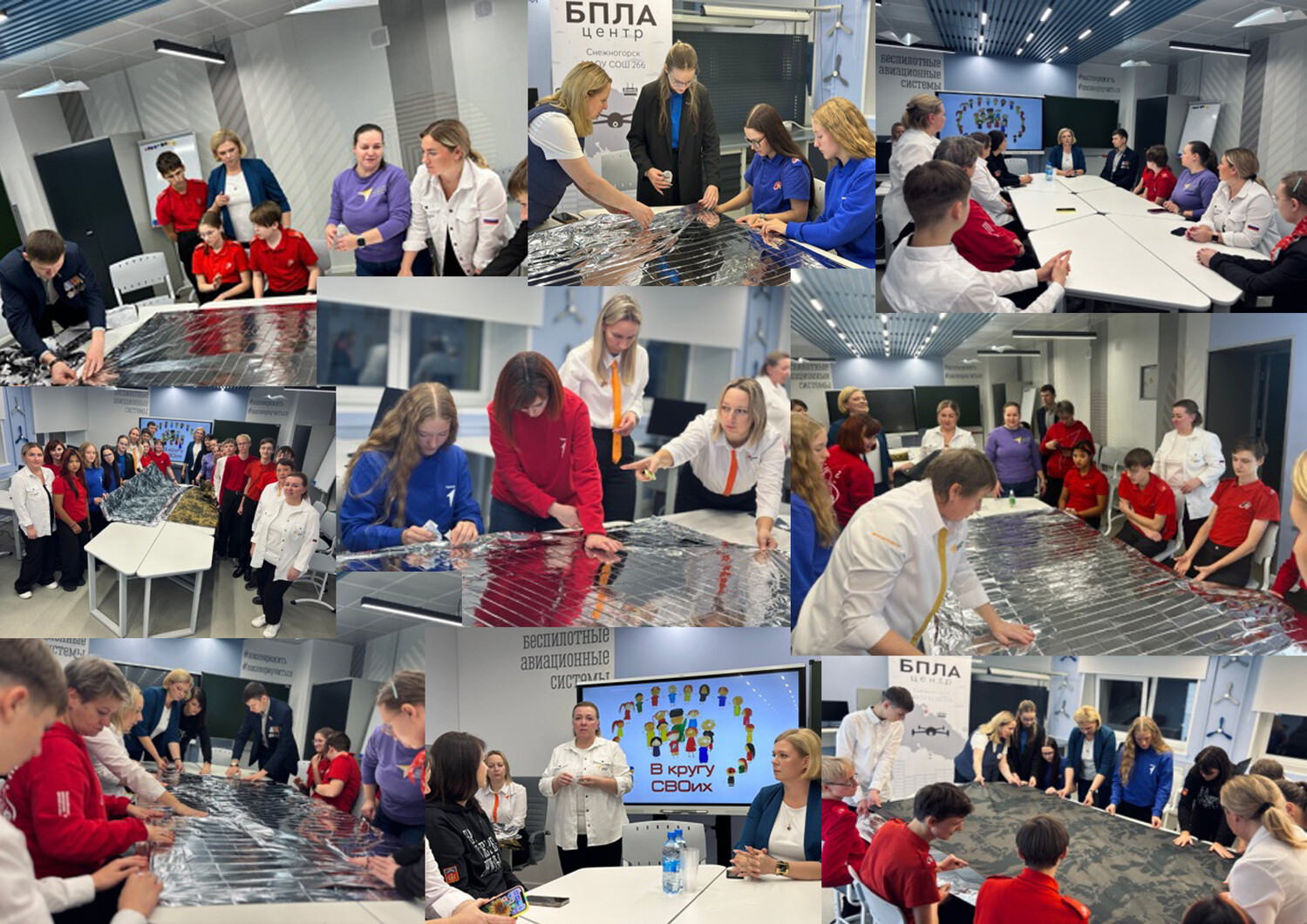 В минувшую пятницу состоялась встреча участников регионального проекта «В кругу СВОих», объединившая представителей Общественной палаты Мурманской области, ветеранов СВО, «Навигаторов детства», специалистов Движения Первых и учащихся образовательных учреждений ЗАТО Александровск. Вместе с муниципальным координатором «Навигаторов детства» Ириной Богатой присутствующие познакомились с уникальным кабинетом БАС школы №266, в котором проходила встреча. Беспилотники изменили облик современной войны. Какую роль они играют на поле боя в зоне СВО? С такого вопроса начался непринуждённый разговор с участником специальной военной операции Кириллом Владимировичем Фёдоровым. Он отвечал на вопросы детей и взрослых о важности поддержки бойцов, сражающихся в зоне СВО, рассказывал о личном боевом опыте. От Кирилла Владимировича участники встречи узнали, как важны любая поддержка и внимание тем, кто находится «за ленточкой». Член Общественной палаты Мурманской области Дарья Владимировна Куликова рассказала присутствующим о том, чем занимается Общественная палата региона: осуществляет поддержку гражданских инициатив, налаживает взаимодействие граждан с органами государственной власти, защищает права и свободы граждан, учитывает их потребности и интересы, контролирует работу органов исполнительной власти. Участники мероприятия узнали, что в Общественную палату Мурманской области входит 21 человек. Дарья Владимировна обратила внимание ребят на мероприятия, которые проводятся в регионе в сфере патриотического воспитания, и призвала школьников активнее участвовать в них, продолжать оказывать помощь участникам спецоперации, направляя «за ленточку» письма, открытки, поделки, гуманитарную помощь. Гости вместе с советниками директоров по воспитанию и ребятами приняли участие в мастер-классе по изготовлению антидроновых одеял. Задача оказалась непростая, но трудности никого не остановили! Старались и дети, и взрослые! Многие захотели продолжить работу и выразили желание помогать в изготовлении полезных предметов для бойцов. «Здорово, когда дети не только из учебников, но и из первых уст узнают о мужестве, долге и любви к Родине! Время встречи пролетело незаметно. Осталось много тем, вопросов, которые хотелось обсудить. Значит, обязательно будет продолжение!» - отметила Ирина Богатая. | |